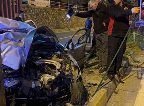 Kdz. Ereğli istikametinden Akçakoca yönüne seyir halinde olan 46 BA 791 plakalı Opel marka otomobil, sürücü Efe Kaan Güney'in direksiyon hakimiyetini kaybetmesi sonucu üst geçidin ayağına çarptı.